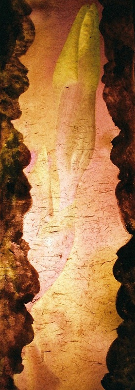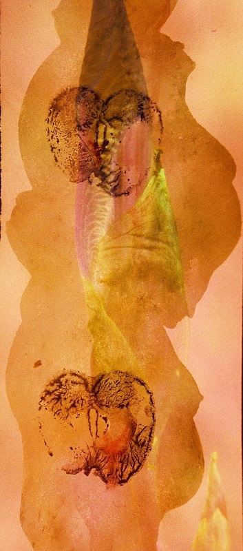 Die Fotografien halten den Endzustand einer Reihe von Gestaltungsprozessen fest. Grundlage bildet ein Fundus von mehreren hundert Fotos schwangerer Frauen. Mittels Projektion und Überblendung werden die Motive und Farben verfremdet. An den Bildrändern sind die schwangeren Leiber jeweils zu säulenartigen Gebilden aufeinander getürmt. Der so eingefasste Mittelteil wird mal zum Ursprung paradiesischer Zustände, ein anderes Mal klafft hier ein Unglück verheißender Spalt, der auch durch die unbestimmte Helligkeit nur wenig gemildert wird.